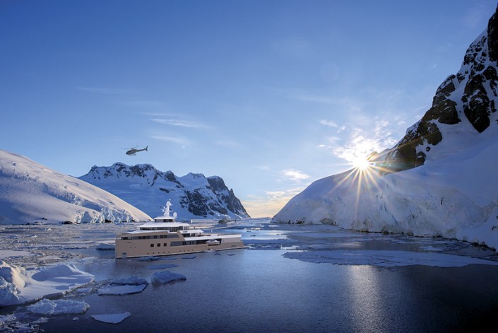 Яхта-ледокол SeaExplorer создана голландской верфью Damen в сотрудничестве с американской Eyos Expedition, организовывающей экспедиции в самые удаленные уголки планеты. Лодка относится к категории эксплореров - такие судна могут долго находиться в пути без дозаправки, а также преодолевать большую волну и лед.