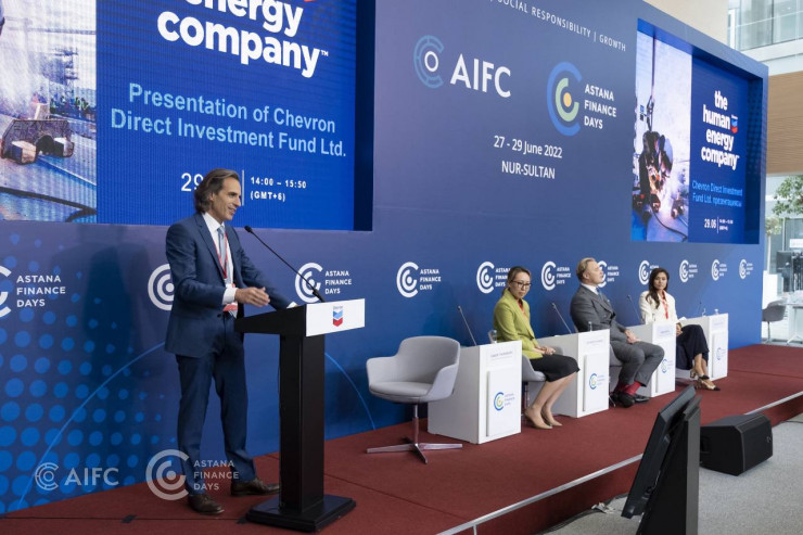 В рамках финансовой конференции Astana Finance Days 2022 "Шеврон Мунайгаз Инк.", подразделение "Шеврон" в Казахстане, презентовал Chevron Direct Investment Fund, частную компанию, созданную в Международном финансовом центре "Астана" (МФЦА) для осуществления прямых портфельных инвестиций.