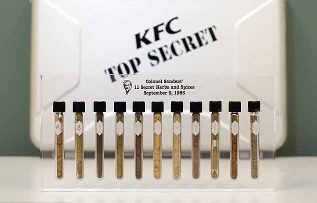 Отметим, что оригинальный рецепт Харланда Сандерса "11 трав и специй" считается одной из наиболее известных коммерческих тайн в индустрии питания. Копия рецепта с автографом Сандерса содержится в сейфе в штаб-квартире компании в городе Луисвилле, штат Кентукки. Там же расположены 11 флаконов с указанными в рецепте травами и специями.