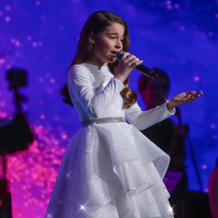 Недавно Микелла написала свою первую песню на иностранном языке, а в ноябре у нее состоялся дебют на большой сцене. Вместе со своей старшей сестрой, 12-летней Сафиной, она выступила перед многотысячной публикой на концерте мамы.