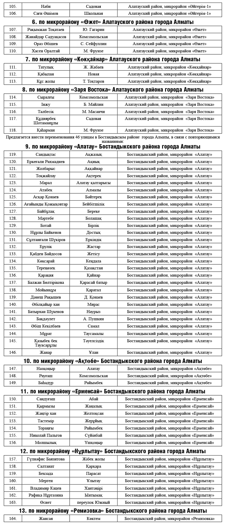 Проект постановления алматинского гормаслихата о переименовании улиц Алатауского, Бостандыкского районов Алматы направлен на публичное обсуждение. В документе, опубликованном на сайте eGov в рубрике "Открытые НПА", подробно рассказывается о переименовании 164 улиц города, сообщает Tengrinews.kz.