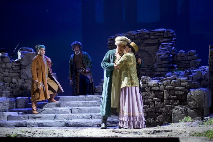 Музыканты оркестра и артисты хора проделали большую работу. Благодаря им идея торжества любви и свободы была раскрыта полностью. Зрительская аудитория осталась под большим впечатлением от мира Абая, показанного в первом акте через фантастическую библиотеку. Над созданием декораций работал выдающийся художник Эцио Фриджерио (Италия), чьи сценографические решения не перестают удивлять. Детально изученные и в результате получившиеся почти подлинными, сценические костюмы, созданные Франкой Скуарчапино (Италия), не уступают оригиналам из национальных музейных сокровищниц.