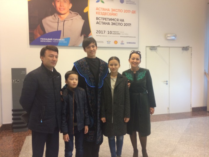 "На родной земле его ждали с нетерпением. Конечно же, теплота от встречи с родными дедушкой, бабушкой, родственниками и мамой, которая прилетела из Пекина на три часа раньше и тоже ожидала его прилета", - отмечает пресс-служба Министерства культуры и спорта РК.