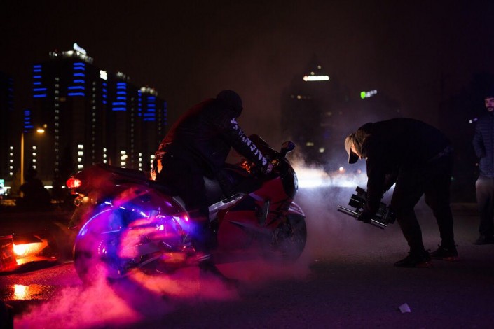 На кадрах клипа Элджей разъезжает на спортивном байке по Алматы.