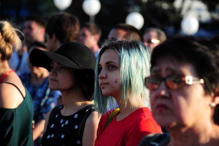 Добавим, что также сегодня выступила казахстанская группа Aldaspan. Музыканты также являются постоянными участниками фестиваля. Можно отметить, что их звучание стало тяжелее, это был настоящий этнический хард-рок. Однако, лиричность в их песнях осталась, она гармонично сочеталась с мелодичными проигрышами. Их выступление завело публику, особенно поклонников рок-музыки, которых на площади собралось предостаточно.