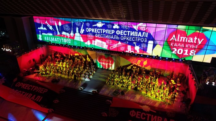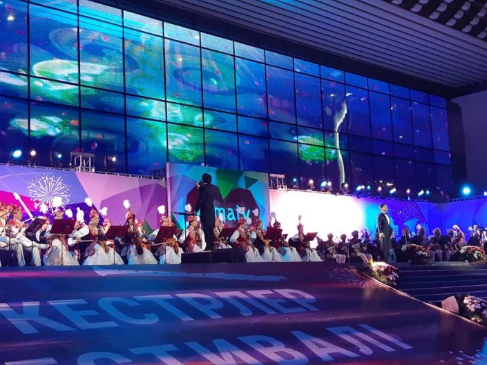 В течение двух дней на площади Абая перед Дворцом республики звучит оркестровая музыка в исполнении прославленных творческих коллективов при участии солистов-инструменталистов и мастеров вокального искусства.