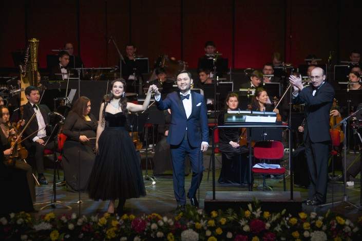 Вполне ожидаемо, что в зале на 1250 человек не было ни одного свободного места. С приветственным словом перед слушателями выступил министр культуры и спорта РК Арыстанбек Мухамедиулы. "Музыкальная жизнь Казахстана развивается быстрыми темпами. Солистка "Астана Опера" Мария Мудряк, 2 года назад завоевав звание лауреата самого престижного конкурса вокалистов "Опералия" Пласидо Доминго, который проходил в Астане, буквально за короткое время достигла колоссальных успехов. Сегодня Мария блистает на лучших сценах мира. Отрадно, что недавно Мария выступила с большим успехом в партии Виолетты из оперы "Травиата" Верди на сцене Королевского театра Маската (Оман), где дирижировал сам маэстро Пласидо Доминго. Все мы помним историю, как девочка из Павлодара стала обладательницей гранта "Болашак", автором этой программы является Лидер нации Нурсултан Назарбаев. И сегодня мы имеем возможность услышать прекрасное пение Марии Мудряк. Также этим вечером выступит замечательный тенор, ведущий солист "Астана Опера" Медет Чотабаев, который стал обладателем престижной первой премии Международного конкурса имени Глинки (Москва). Его также с удовольствием приглашают выступать в лучшие театры мира. Оркестром будет дирижировать прославленный музыкант Илья Машкевич", - отметил Арыстанбек Мухамедиулы.