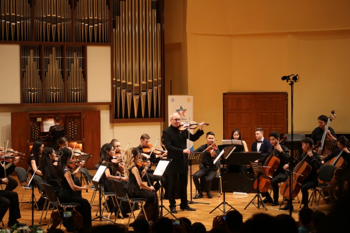 Отметим, что концерт прошел в рамках фестиваля творческой молодежи "ЖасSTAR". В программе прозвучали произведения Вивальди "Времена года" для скрипки и струнного оркестра, Франка "Соната для скрипки и фортепиано ля мажор", Бартока "Румынские танцы" для скрипки и фортепиано.