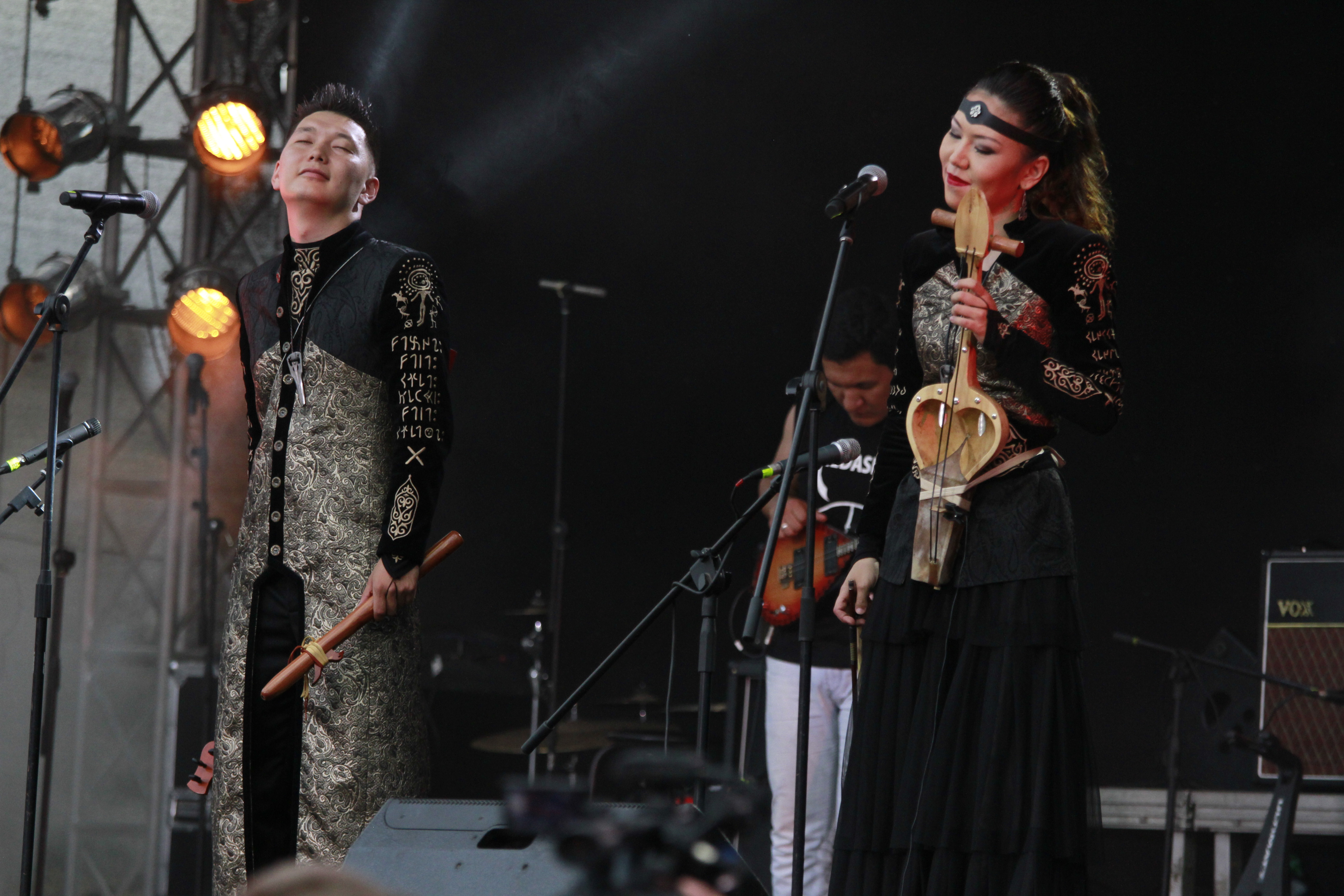 Коллектив показал мастерское владение горловым пением под аккомпанемент домбры и шанкобыза. Вместе с ними на сцену вышли участники группы Aldaspan, которые играют рок на электродомбрах. Вместе музыканты исполнили несколько авторских композиций. Стоит отметить, что с самого начала они зажгли публику динамичной музыкой, которая вскоре сменилась лиричными мелодиями.