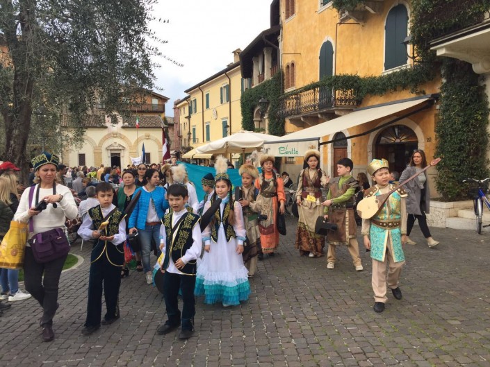 Фестиваль проходил с 1 по 3 апреля в городе Лаго ди Гарда при поддержке мэра. Как рассказала художественный руководитель ансамбля Роза Есбосынова, юные музыканты выступили с тремя номерами - кюями "Акку" Нургисы Тлендиева и "Секиртпе" Абдулхамита Райымбергенова, а также исполнили попурри из народных песен.