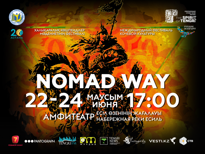 Местом проведения Nomad Way 2018 выбран амфитеатр на набережной реки Есиль. В этом году астанчан и гостей столицы ждут три незабываемых концертных дня (22-24 июня). На сцену фестиваля выйдут 19 уникальных коллективов из 20 стран мира, представляющих музыкальную культуру тюркских и братских народов. Начало концертов в 17:00. Вход свободный