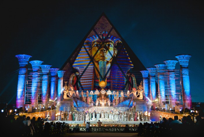 Уникальность оперного спектакля "Аида", который посетят жители и гости столицы, заключается в том, что постановщиком выступил легендарный итальянский режиссер и сценограф современности - Франко Дзеффирелли. Элементы шоу, огромные фигуры египетских богов, сверкающие золотом росписи роскошные костюмы и, конечно, седьмое чудо света - древнейшая пирамида. В постановке задействовано порядка 200 человек, начиная с солистов оперы, мужского и женского хора, артистов балета, оркестра, миманса, заканчивая детьми. Картину дополняют 315 единиц бутафории.