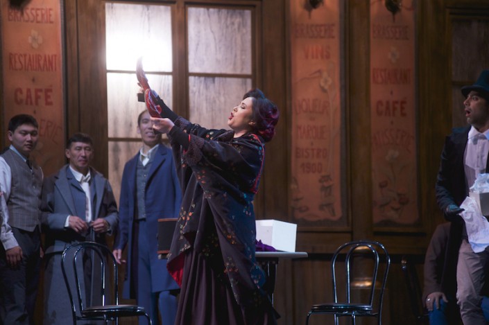 Как комические, так и драматические сцены в исполнении Салтанат Ахметовой, Альфии Каримовой (Мюзетта) и Сундета Байгожина, Талгата Мусабаева (Марсель) вызывали слезы на глазах у публики. Блистательный актерский талант ведущих солистов, отточенный как бриллиант, давал возможность слушателям наслаждаться каждым жестом, каждым взглядом артистов.