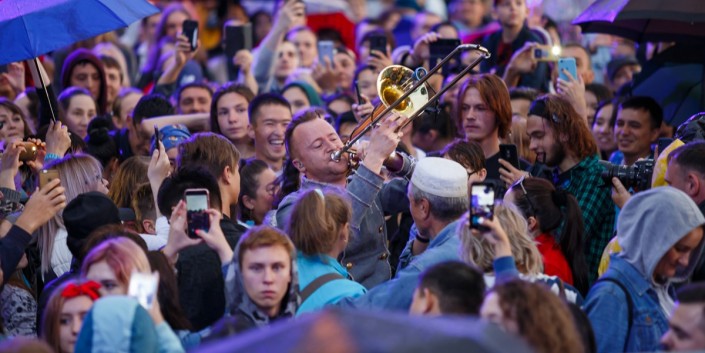 Особое внимание он уделил выступлениям венгерской группы Kerekes Band и тувинского исполнителя Радика Тюлюша: "Первый день фестиваля закрывало выступление венгерской группы Kerekes Band, исполняющей яростно-джазовую, панк-фанк-музыку, основанную на традиционных мотивах Венгрии и Румынии. Специально приглашенный гость из Тувы Радик Тюлюш поразил всех, исполнив казахскую национальную песню "Көзімнің қарасы", написанную Абаем и разученную специально к фестивалю. В этот момент по моему телу пробежали мурашки".
