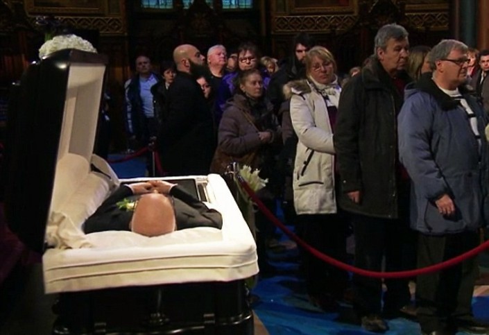 Почтить память талантливого продюсера пришли тысячи человек. Они простояли несколько часов на холоде, чтобы попасть внутрь базилики и выразить свои соболезнования певице. Для тех, кто не смог лично присутствовать на панихиде, была организована прямая трансляция этого грустного мероприятия.