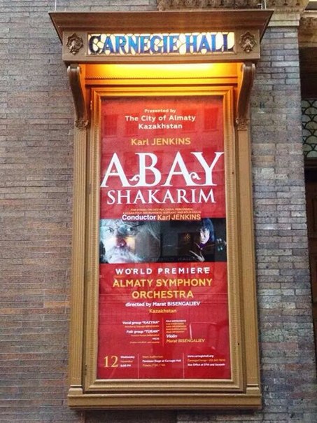 Автором произведений "Абай" и "Шакарим" является британский композитор, командор Превосходнейшего ордена Британской империи Карл Дженкинс. Маэстро серьезно подошел к созданию этих произведений и специально посетил Казахстан для того, чтобы погрузиться в музыкальную среду кочевников и изучить народные музыкальные инструменты казахов. 12 ноября в Карнеги-холл сэр Карл Дженкинс выступил в качестве дирижера. Кроме этого, в концерте в Нью-Йорке приняли участие хор "Казына" и этно-фольклорная группа "Туран".  "Концерт прошел более чем успешно. Зал был полон. После финального произведения зрители около 30 минут не отпускали оркестр аплодисментами. Музыкантам пришлось исполнить несколько произведений "на бис", - отметил Якуба.
