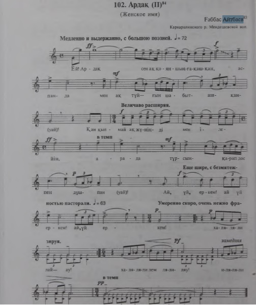 "Ноталарды қағазға түсіру үшін біз Ғаббас екеуміз ауылдан шет жерге шығып жайғастық. Мен оны бетегелі, тербеліп жатқан көлдің маңында тыңдадым. Ол қолына домбыраны алып "Ардақ" пен "Қанапия" әндерін орындады. Мен оны жатып тыңдадым. Сол уақытта мен аспанда қалықтап ұшып жүрген ірі он екі қыранды санадым. Мінекей, осындай қоршаған ортада оның әні ерекше естілді. Мен бұл әнді бұрында білетінмін, ол менің бірінші кітабыма енген. Бірақ Ғаббас орындауында бұл ән өзгеше шырқалды. Меніңше, оның шырқауы жеңіл, теңіз толқыны тәрізді, оған домбыраның жоғарғы дыбыс беретін ішегін қосыңыз. Ғаббастың орындауындағы "Ардақ" сайын даланың тыныштығын, ай жарығының жайлылығын білдіреді", - дейді Затаевич.