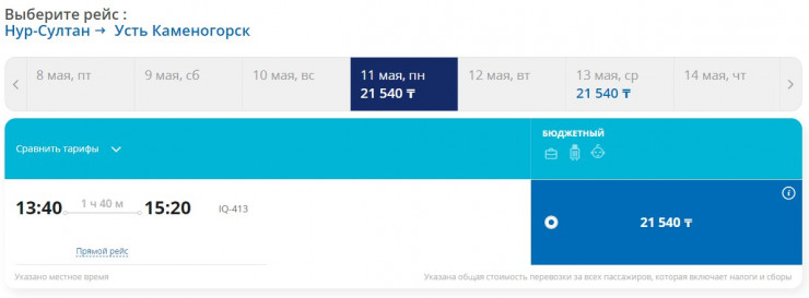 Билеты на какие внутренние авиарейсы доступны в Казахстане с мая