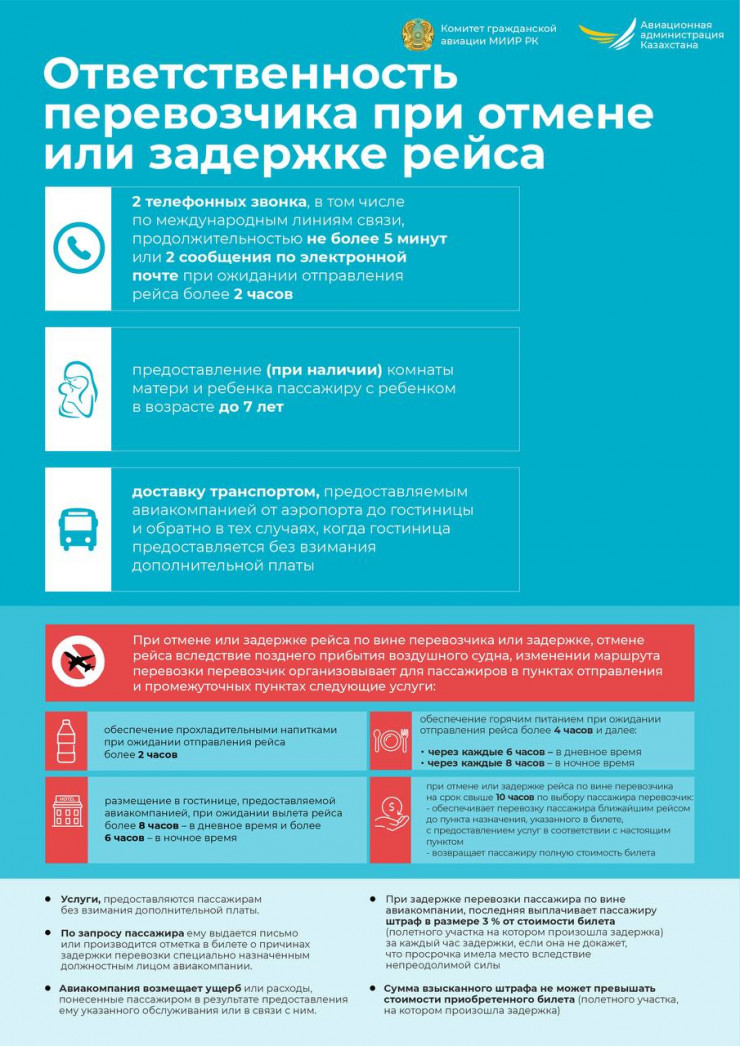 В преддверии праздничных выходных Комитет гражданской авиации и Авиационная администрация напоминают казахстанцам о правах пассажира при задержке рейса, а также правилах перевозки багажа, передает Tengritravel.kz.