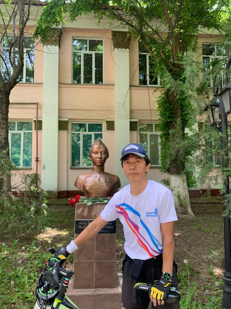 "Вместе с сыном, которого в детстве водил на парад, в этот раз проехались по памятным местам. Открытием для меня было, что у нас есть аллея памяти на территории медицинского института нашего (КазНМУ имени Асфендиярова - прим. автора), посвященная студентам и сотрудникам университета, ушедшим на фронт. Потом мы посетили другие памятные места. Побывали на Абылай хана, где находятся бюст летчика Луганского, памятники Алие Молдагуловой и Маншук Маметовой и памятник Бауржану Момышулы. А парк имени 28 гвардейцев-панфиловцев в то время был закрыт. Издалека удалось сфотографироваться.