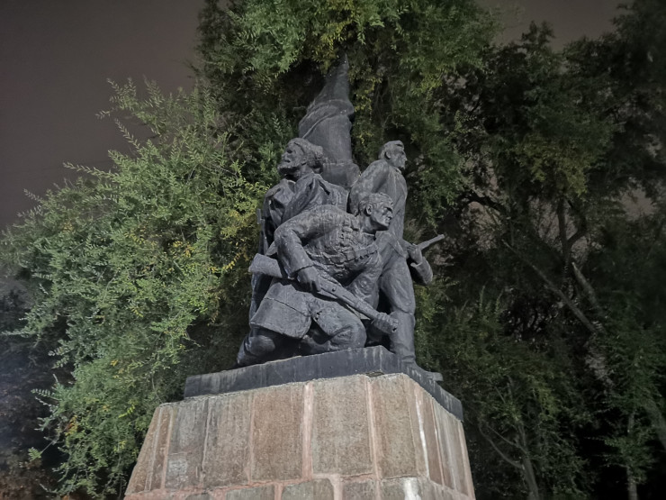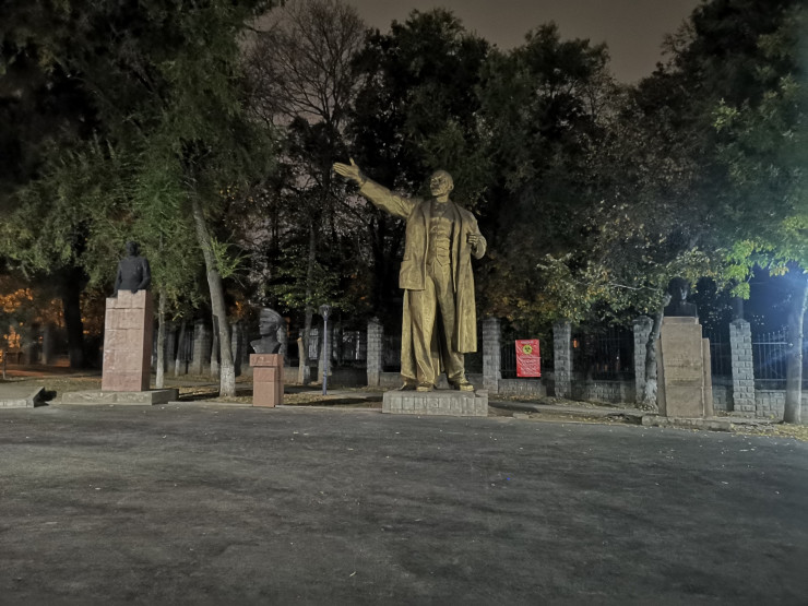 Осталась последняя и самая крупная точка нашего маршрута. Это сквер за кинотеатром "Сары-Арка" на пересечении проспектов Абая и Алтынсарина, который является последним пристанищем для памятников Владимиру Ленину, Михаилу Фрунзе, Максиму Горькому, Михаилу Калинину, борцам Октябрьской революции, Павлу Виноградову и Дмитрию Фурманову. Они все когда-то возвышались на алматинских улицах.