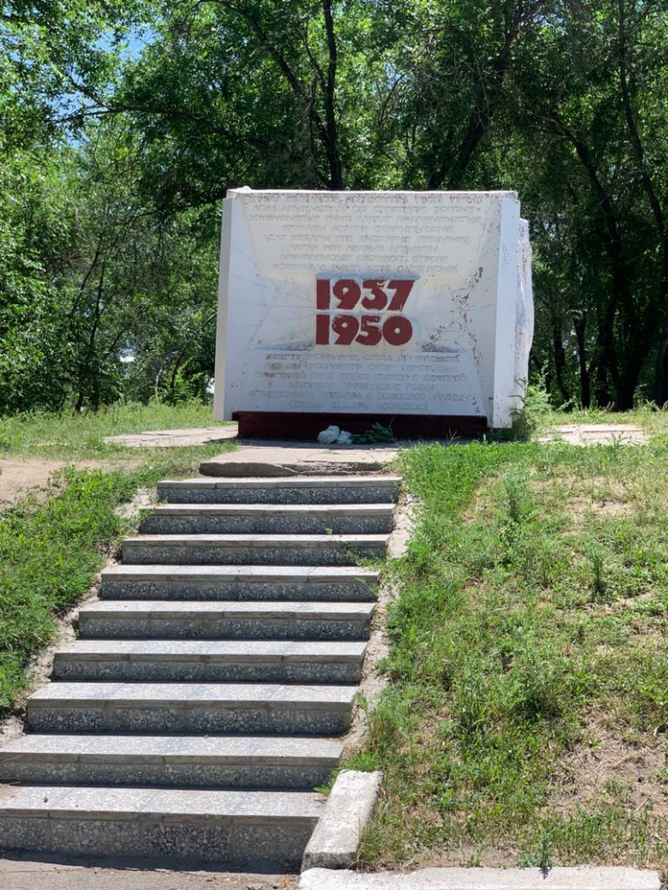 Есть у него и памятники, которые он посещает каждый год, такие как мемориал жертвам репрессий. Расположен он под Алматы - на въезде в поселок Бурундай, в месте под названием Кандысай.