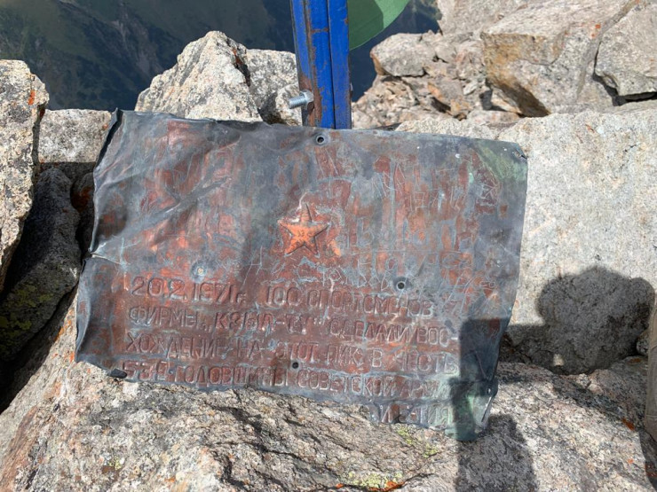 Есть и памятная табличка на Большом Алматинском пике. "2 февраля 1971 года сто спортсменов фирмы "Кызыл Ту" сделали восхождение на этот пик в честь 53-й годовщины Советской армии", - гласит надпись на табличке.