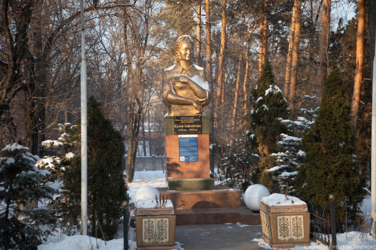 Интересный факт. В его сквере в 1967 году был установлен бюст драматурга Мухтара Ауэзова. Скульптором является Тулеген Досмагамбетов. Двухтомный роман Мухтара Ауэзова "Путь Абая" вошел в "Библиотеку всемирной литературы". Фильм по его рассказу "Лютый" номинировался от СССР на премию "Оскар".