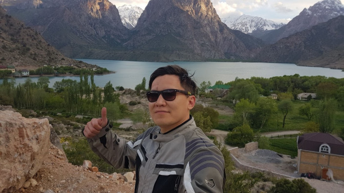 На следующий день выехал в Душанбе, где по дороге был впечатлен горным озером Искандеркуль, которое расположено на северных склонах Гиссарского хребта в Фанских горах. Добраться до воды можно только по проселочной дороге. Ехал на мотоцикле достаточно долго. Когда поднимался на склон, впервые упал с мотоцикла. Причем заезжал на небольшой скорости. Думаю, все из-за отсутствия практики заезда на крутой склон.