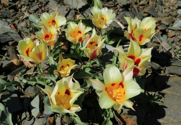 Низкорослый вид - "тюльпан Кауфмана" - выделяется яркостью красок. Усилиями селекционеров было выведено около двухсот новых разновидностей этого сорта, но в дикой природе тюльпан Кауфмана встречается только в горах Западного Тянь-Шаня (от Угамского хребта до западной части Кыргызского Алатау) и Каратау. Насладиться цветением "тюльпана Кауфмана" можно с конца марта до конца июня в низкогорьях, а до начала июля - в верхних поясах гор.