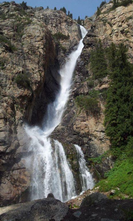 Например, водопад Бурхан-Булак. От всемирно известных водопадов он выгодно отличается тем, что находится рядом, в 400 километрах от Алматы. Не нужно оформлять заграничные визы, делать прививки от малярии и опасаться быть съеденным туземцами. Тут есть, конечно, свои подводные, а точнее горные камни, про которые я вам расскажу чуть позже.