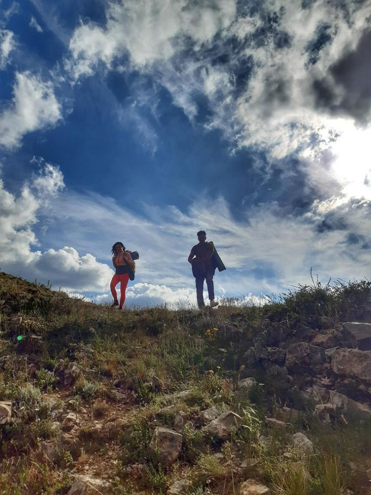 Начали маршрут из поселка Угам и одноименной реки Угам. В одну сторону шли около 15 километров. Это заняло примерно восемь часов. Сложность состояла в том, что точного маршрута никто из нашей команды не знал, ориентировались по карте и объяснениям знающих людей. Прошли через живописные цветущие луга, на которых частично лежал снег, поднялись на гребень 2 800 метров и прошли по нему, смотря на всю красоту Угама с высоты птичьего полета. Мы шли по лугам, и облака будто касались наших волос - настолько прекрасна и живописна природа Угама.