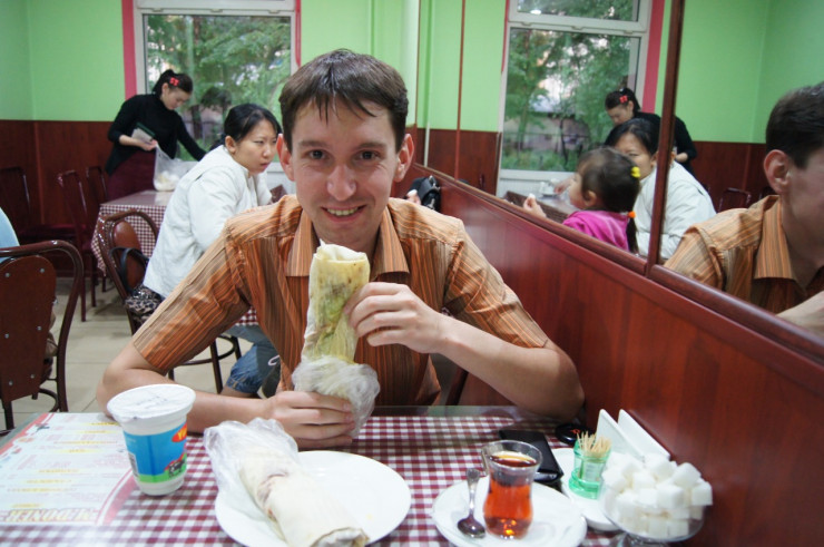 Кухня. Еда здесь высокого класса, при этом очень дешевая. Возможно, только в Индии дешевле. Но уровень заведений и сервиса здесь гораздо выше, чем в Индии. В Казахстане прекрасно умеют готовить мясо. Один эстонец сказал мне, что самый вкусный стейк он пробовал в Алматы. Шашлык в Казахстане мне нравится даже больше, чем в Грузии. Знакомый путешественник однажды угостил меня лагманом и решил показать мясной павильон внизу города: казы, баранину, говядину. Все очень доступно по ценам и ассортименту.
