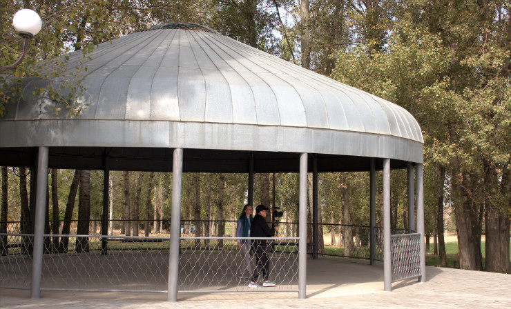 Не так давно это место было облагорожено - здесь уложили тротуарную плитку, установили мраморные таблички и возвели металлическую юрту.