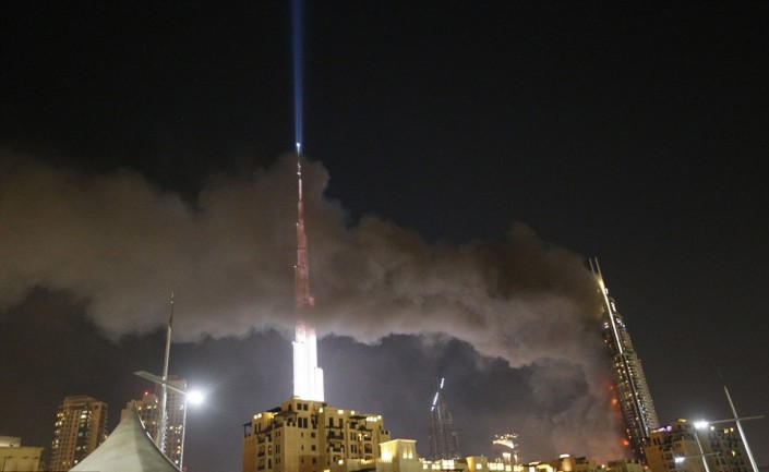 В Дубаи празднование Нового года вечером 31 декабря омрачилось сильным пожаром в пятизвездочном отеле-небоскребе Address Downtown, который расположен рядом с самым высоким зданием в мире - башней Бурдж Халифа. Фотографии и видео с места события очевидцы инцидента публикуют на своих страницах в социальных сетях - Twitter, Instagram, Facebook, сообщает Tengrinews.kz.