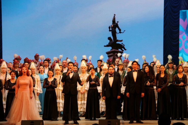 В Большом зале театра состоялось торжественное юбилейное мероприятие, где была зачитана поздравительная телеграмма Президента Республики Казахстан Касым-Жомарта Токаева.