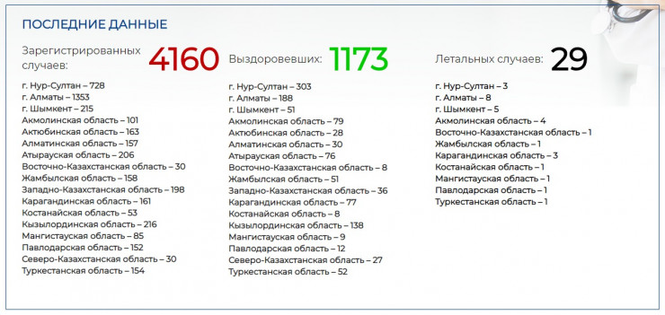 Итого зарегистрированных случаев в Казахстане - 4160.