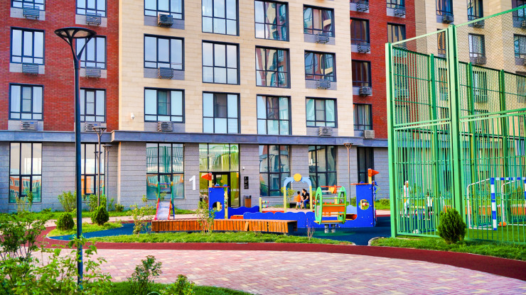 Территория двора разделена на несколько зон. Он функционален как для активного отдыха и занятий спортом, так и для спокойного отдыха в тени деревьев. Доступ для автомобилей запрещен, установлено круглосуточное видеонаблюдение – созданы все условия для безопасности жителей. Зоны отдыха и игровые площадки для детей разных возрастов – каждый найдет что-то по душе. А панорамные окна позволят полноценно насладиться открывающимся на город видом. Озелененная территория, гармоничная цветовая гамма – все это создает на территории особый уют. Впервые в Шымкенте при создании ЖК использован ландшафтный дизайн: дворы и холлы выполнены в уникальном авторском дизайне.