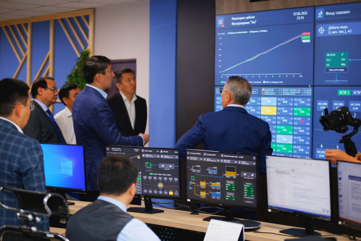 Завершением поездки стало рабочее совещание в офисе АО "Эмбамунайгаз" (ЭМГ), руководство которого предоставило главе КМГ результаты внедрения системы "Интеллектуальное месторождение" на своем производстве. Проект позволяет осуществлять оперативный мониторинг технологических процессов на производственных объектах (управление производством, мониторинг транспорта, эффективное использование спецтехники и другое).