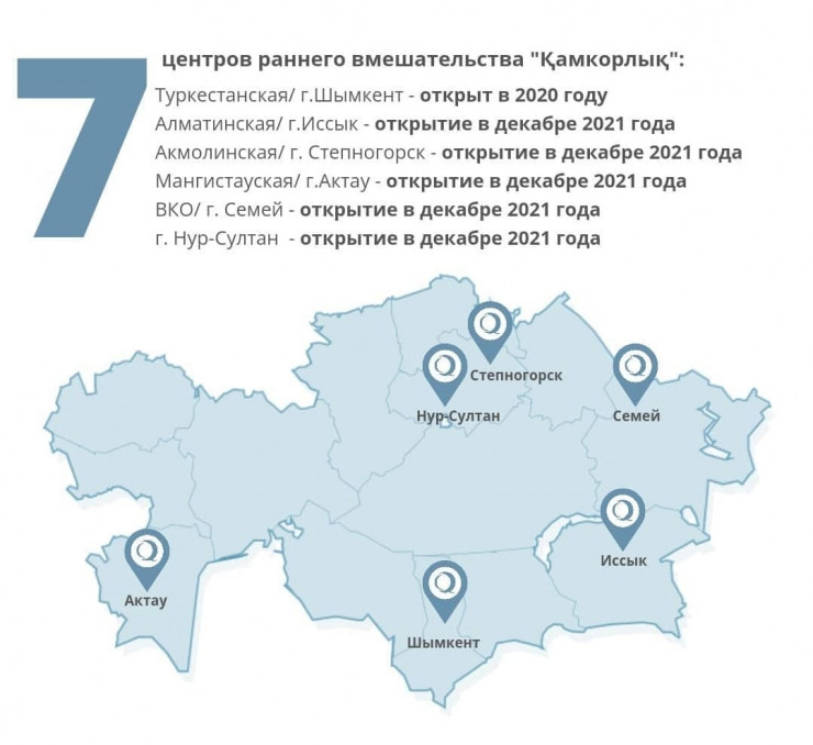 К концу этого года запланировано открытие уже 6 центров в регионах: Акмолинской, Актюбинской, Алматинской, Восточно-Казахстанской, Мангистауской областях и в городе Нур-Султане.
