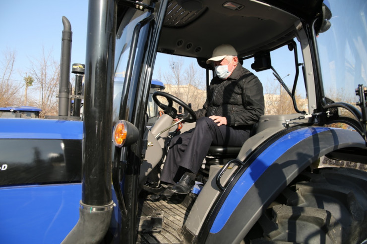 Аким области оценил как старые, так и новые тракторы, поговорил с крестьянами, а затем опробовал новый LOVOL. Данный трактор оснащен кондиционером, печкой, имеет хороший обзор и легок на ходу.