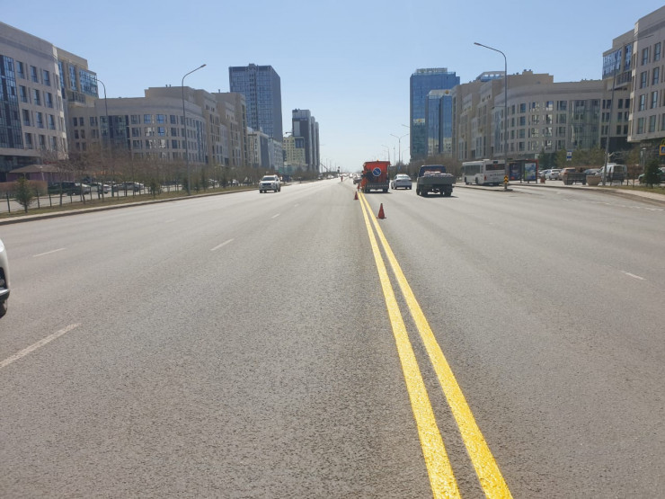 "На территории столицы в экспериментальном порядке организована работа по применению двойной сплошной линии дорожной разметки в желтом цвете по проспекту Мангилик Ел от улицы Улы Дала до проспекта Кабанбай батыра в пилотном проекте. Также планируется применить данную разметку на проспектах Женис и Сарыарка", - рассказали в ведомстве.
