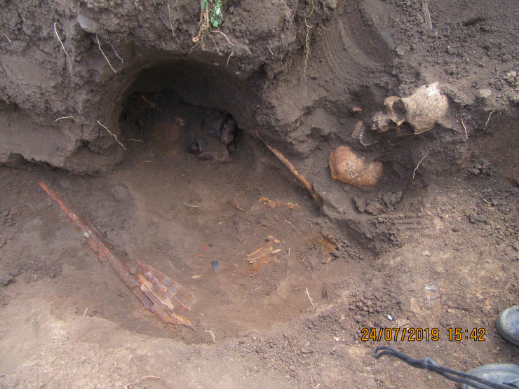 "Тогда мы говорим, что воин очень хотел домой. Так было и с Воронько. 24 июня 2019 года в 14 часов 24 минуты сработал сигнал металлоискателя. Мы начали копать. Первое, что нам попалось при раскопе, - солдатский ботинок. Далее пошла кость. От кости мы начали расширять яму, чтобы выяснить, фрагментирован ли боец. Но далее выяснилось, что в этой ячейке лежат два воина. Один найденный боец был очень молод – не старше двадцати лет", - вспоминает он.