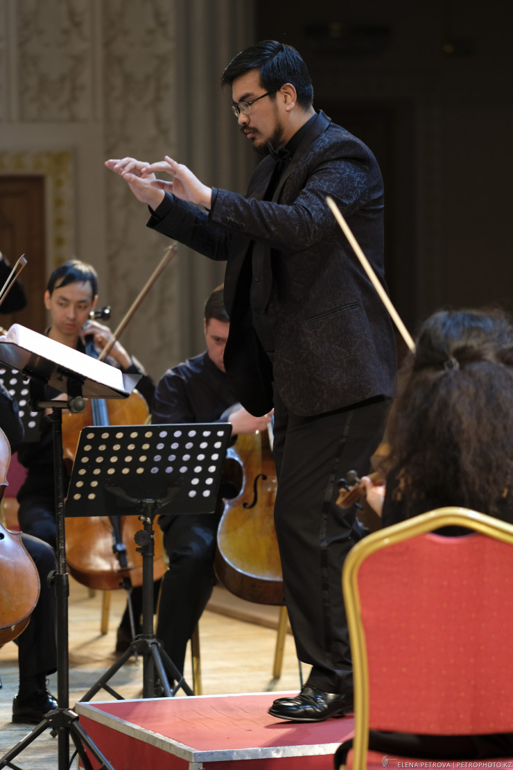 Художественный руководитель и главный дирижер – Канат Омаров. Выпускник Казахской национальной консерватории имени Курмангазы, участник Тихоокеанского музыкального фестиваля в Саппоро (Япония). С 2013 года член Международной оперной студии Цюрихского оперного театра, где был ассистентом генерального музыкального руководителя Цюрихской оперы Фабио Луизи. Выступал в таких залах, как Carnegie Hall (Нью-Йорк), Kennedy Center (Вашингтон), концертный зал Мариинского театра (Санкт-Петербург), большой зал Московской консерватории, Kitara Hall (Япония).