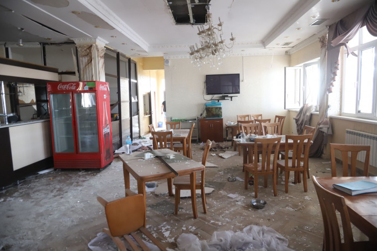 "Нас с супругом в это время там не было, мы как раз вчера уехали на лечение. Примерно к часам 6 вечера нам позвонили официанты. Они когда работали, произошел взрыв. Первой волной выбило стекла, люди падали, потом начали в панике бежать. Они все побежали на поле, кто-то побежал в Михайловку, это поселок рядом с нами. Потом уже началась подряд взрывная волна. Наш комплекс внутри почти полностью разрушен. Крыша, двери, окна - все непригодное. Все имущество повреждено", - говорит хозяйка комплекса.