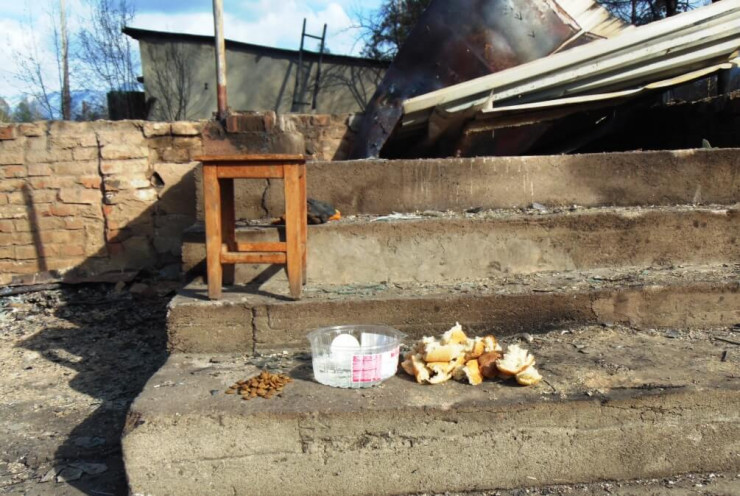 Почему-то врезались в память одни из таких ступенек, на них стоял табурет, лежали забытые кем-то перчатки и стояла упаковка из-под торта, наполненная водой, лежали куски хлеба и корма. Хозяева надеялись, что их питомец - будь то кошка или собака - все-таки выжили и вернутся к дому, которого уже нет. Говорят, первым делом, покидая свои дома, риддерцы выкатывали газовые баллоны, чтобы не взорвались, и спускали с привязи собак, чтобы те могли спастись.