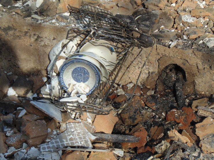 Дом № 3 по улице Лихачева находился почти вплотную к лесу, а значит, первым встретил огонь. Наутро здесь осталась только печная труба, фундамент и почему-то уцелели тарелки в сушилке.