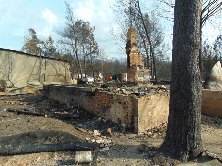 Говорит, был просто сказочный вид на лес, который находился сразу же за оградой. Теперь там частокол обугленных сосновых стволов.