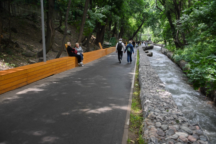 Во-вторых, по его словам, привели в порядок русло, очистив его от ила и песка. Укрепили и восстановили габионные конструкции. Реконструировали мост на улице Макатаева, обновили гидротехнические сооружения. Это позволило увеличить пропускную способность реки Малая Алматинка с 0,5 до 2,5 кубометра в минуту. Где было возможно, расширили дорожку с двух до трех с половиной метров, заменив асфальтовое покрытие.