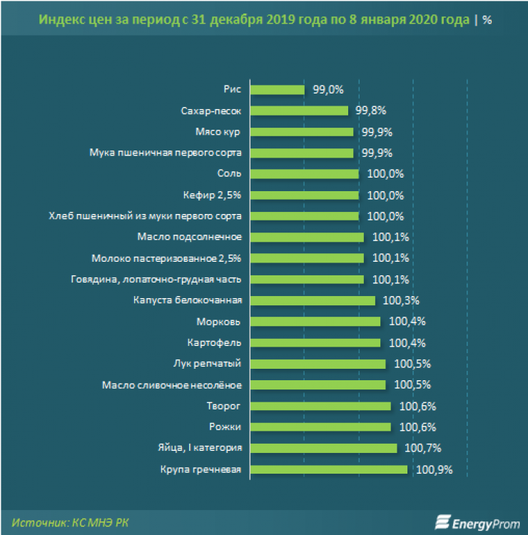 В Казахстане за первую неделю нового, 2020 года подорожал ряд продуктов, передает Tengrinews.kz со ссылкой на Energyprom.kz.